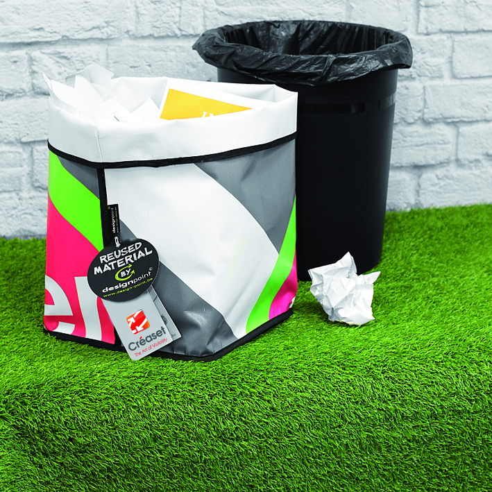 Fondée il y a plus de 25 ans et installée à Braine-l’Alleud depuis 1992, la société emploie 46 personnes. Certifiée Emas depuis plus de 3 ans et soucieuse de l’environnement, Créaset a décidé de diminuer son empreinte carbone grâce à l’utilisation exclusive d’encres sans solvant et au recyclage des bâches. « Nous produisons plus de 233000m² de matériaux souples par an (bâches, vinyles,…) il était indispensable d’agir à ce niveau-là. Nous avons donc rencontré la société DESIGNpoint avec qui nous avons mis sur pied le projet de récupérer les bâches pour leur donner une seconde vie. Le client est ravi de cette initiative. De plus, DESIGNpoint fait appel, entre autre, à une entreprise de Travail Adapté de Braine-l’Alleud, ce qui donne une belle dimension sociale à ce projet » confie Laurence Desmul, assistante finances et direction.